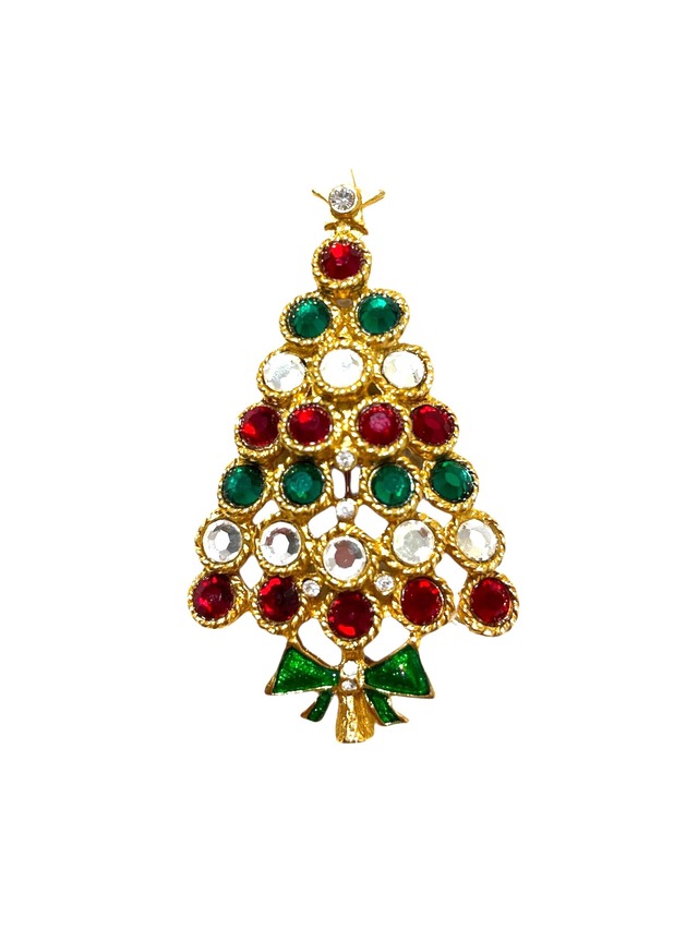 ロサンゼルスで買付した1点物のヴィンテージブローチ ゴールドのツリーがラインストーンで華やかに彩られたデザインが特徴的で、クリスマスシーズンにぴったりなアイテム ●サイズ 縦約5.3cm×横約4cm ◆注意事項 ※ブラウザ上の写真の模様(柄の出方・色の見え方)と現物は異なる場合がございます。 ※ヴィンテージ商品は、若干の傷等がありますので、ご理解頂いたうえでご購入をお願いいたします。 ※アレルギー対応はしておりません。