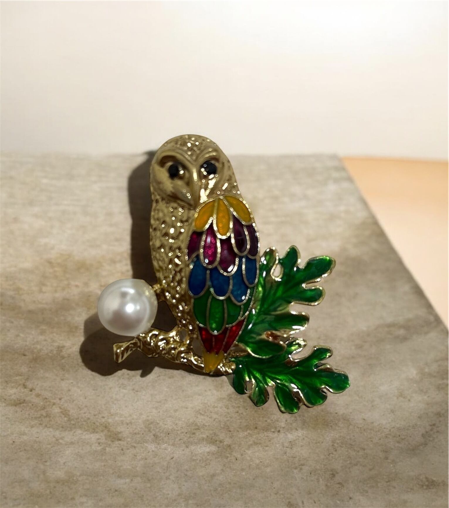 一品限りのパールをあしらったふくろうデザインのヴィンテージブローチ。しっとりとしたパールの輝きが優雅さを引き立て、あなたのコーディネートに特別な魅力を添えます。シンプルな装いに、ちょっとした遊び心をプラスしてくれることでしょう。大切な方への贈り物にもぴったりなアイテムです!