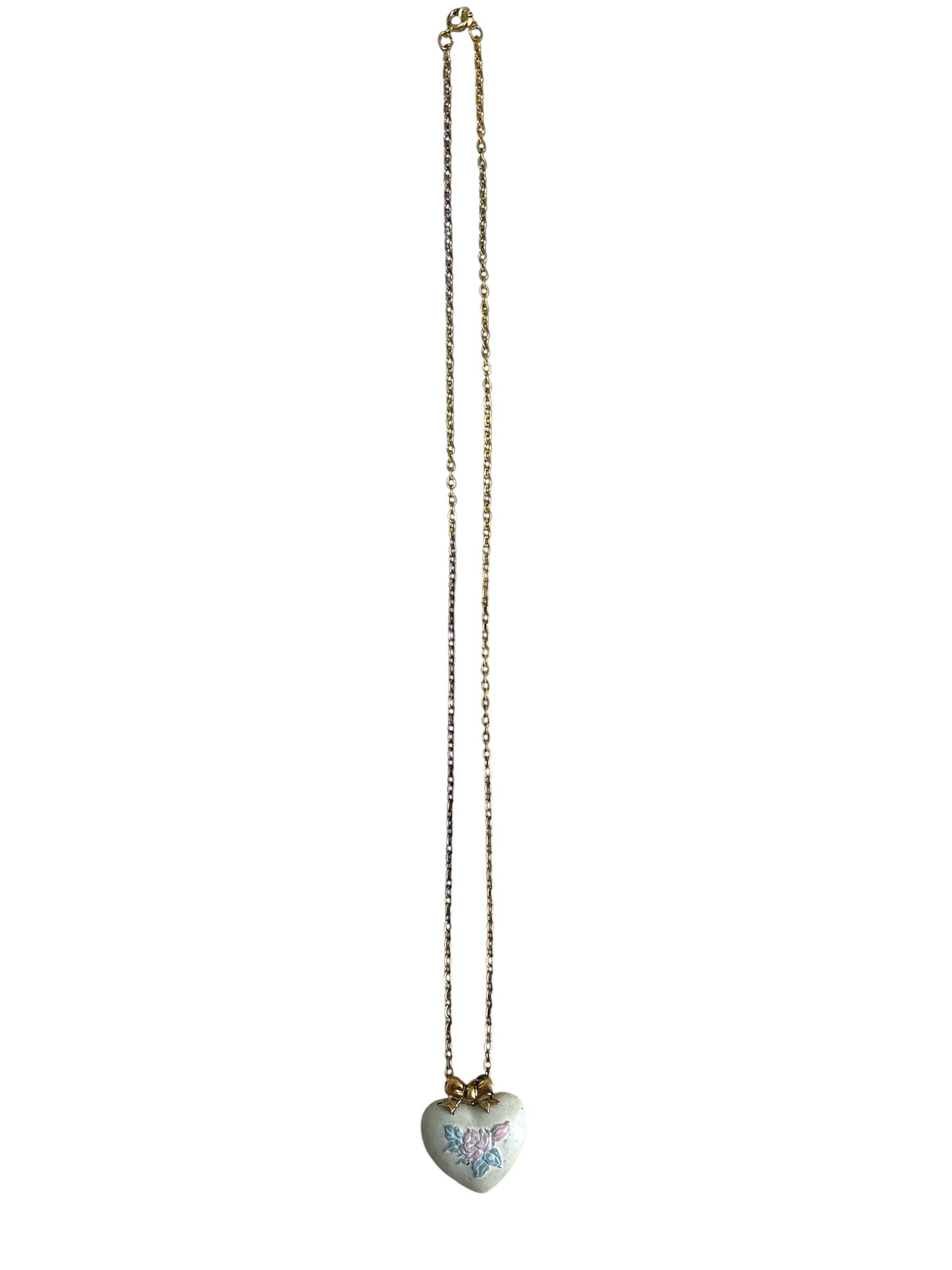 立体的なハートとゴールドリボンが美しく調和し、ヴィンテージ感溢れるデザインを引き立てます。